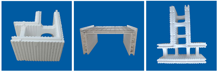 复合墙体定义:将表观密度30kg/m3墙体空腔模块经积木式错缝插接拼装成空腔墙体,其内置入钢筋、浇筑厚度为130mm的混凝土或再生混凝土。内外表面用12mm厚颗粒浆料抹面、3mm厚抹面胶浆加一道耐碱玻纤网布抗裂增强,或安装厚度不小于15mm的纤维水泥板,再按设计要求饰面,由此所构成保温与承重一体化的房屋外墙。